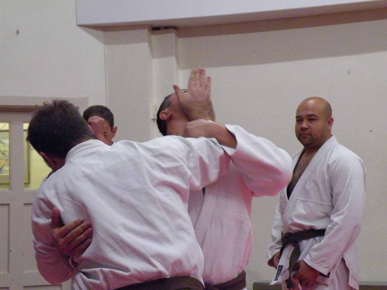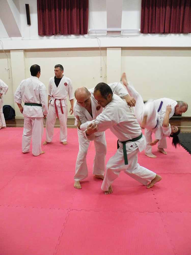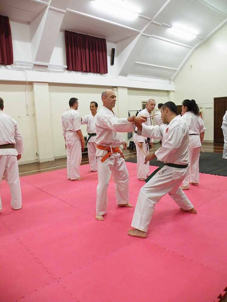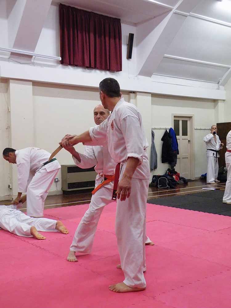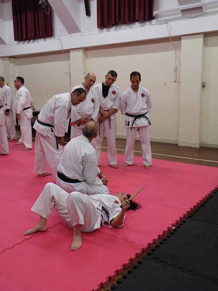 Time flew as we went through wrist escapes, knife defences, a few throws, locks and counters. While up the other end of the mat, the brown belts demonstrated their black belt techniques to Renshi John Michell, for some helpful and impartial advice for their upcoming grading.