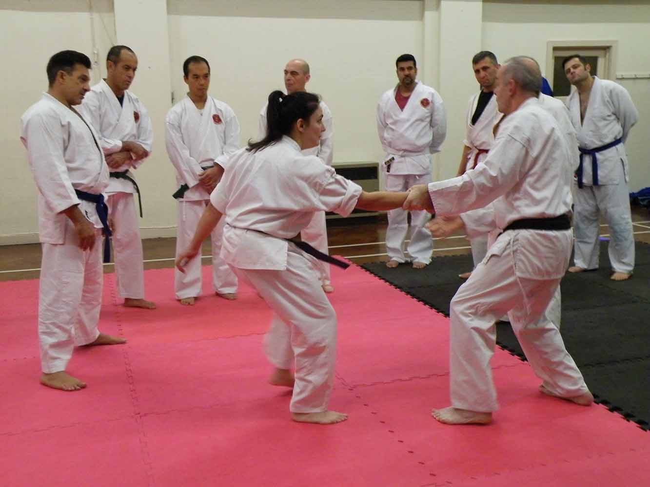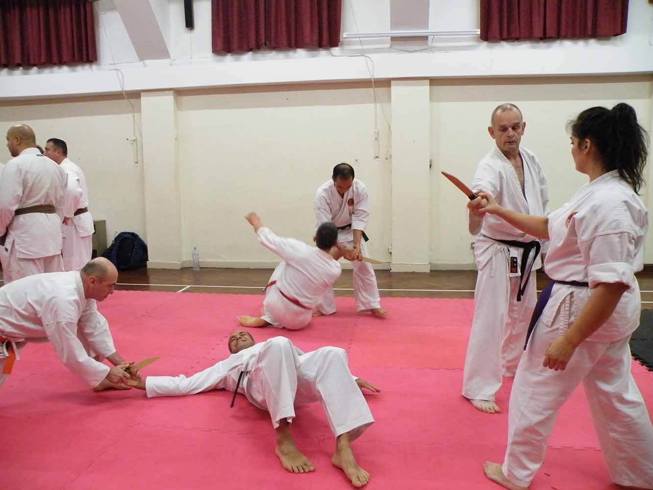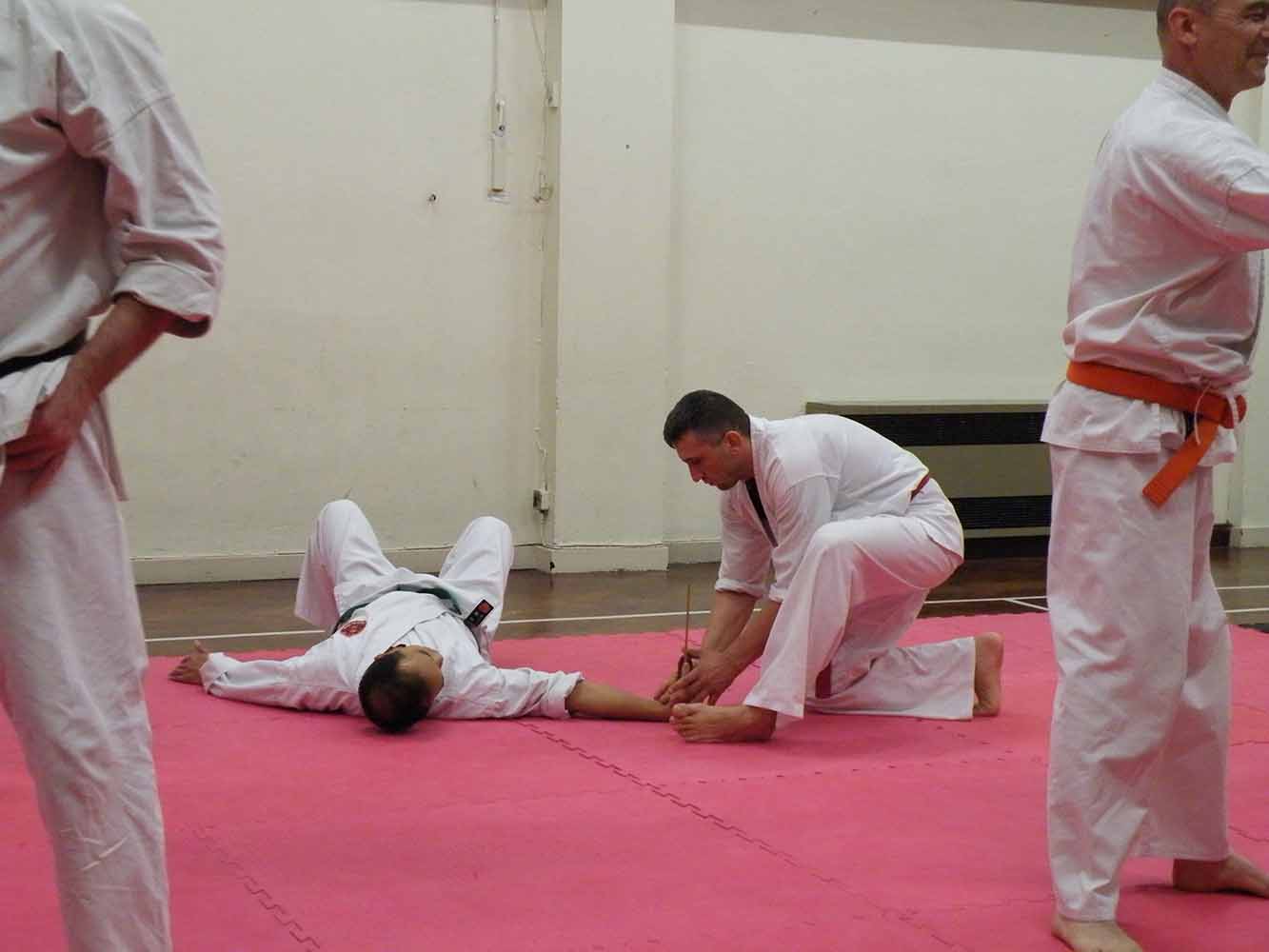 Time flew as we went through wrist escapes, knife defences, a few throws, locks and counters. While up the other end of the mat, the brown belts demonstrated their black belt techniques to Renshi John Michell, for some helpful and impartial advice for their upcoming grading.