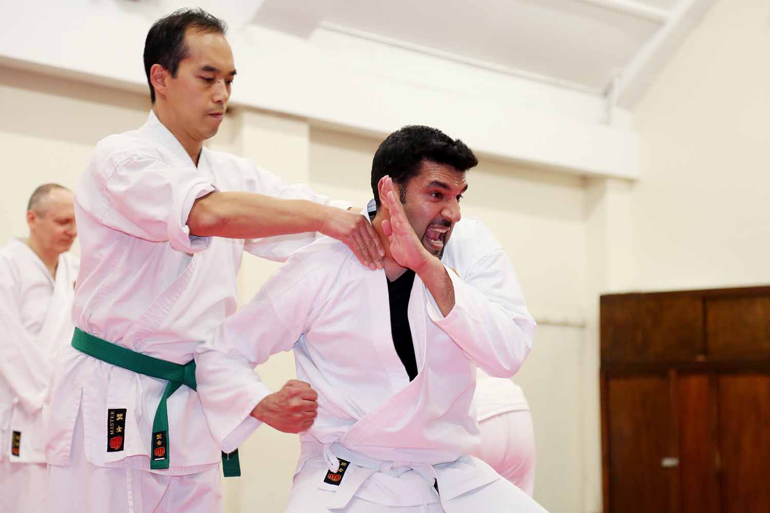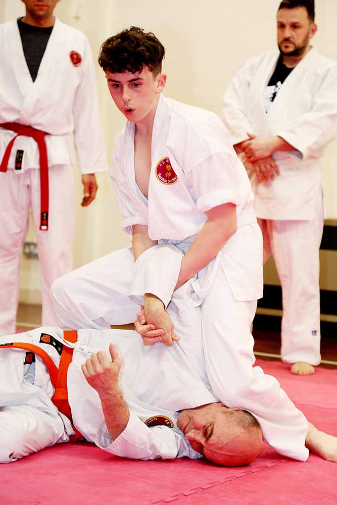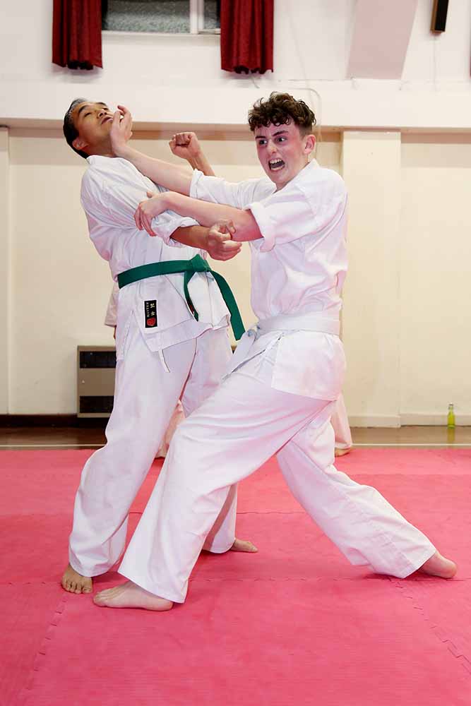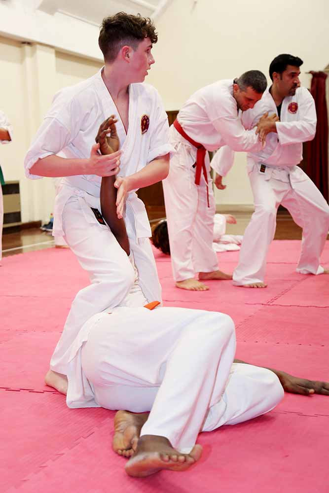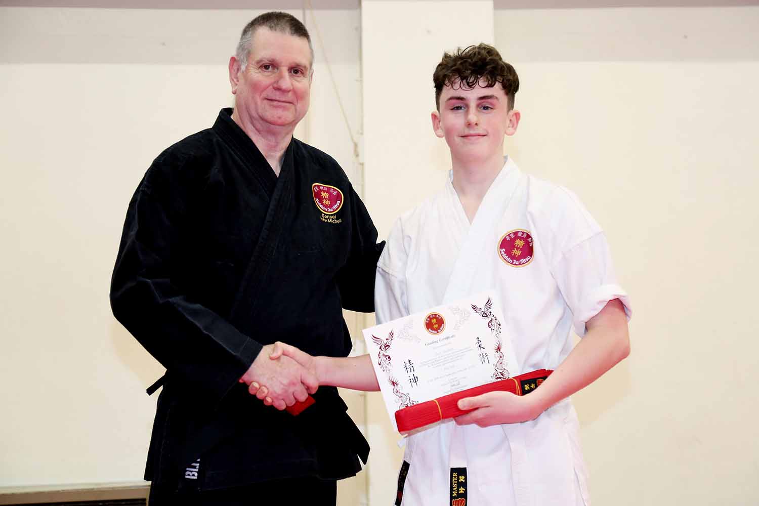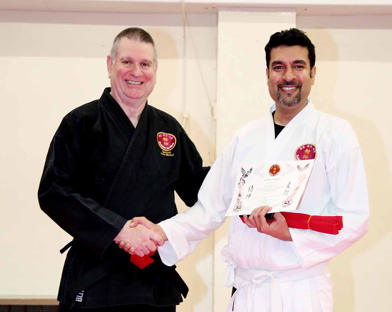 Marc and Usman showed incredible stamina and control, keeping their guard up and their wits about them at all times. They coped well with the pressure of the constant attacks and knew their syllabus well. Their grading lasted an hour, and they certainly earned their Red Belts. They performed to the best of their ability and we couldn’t have asked for more.